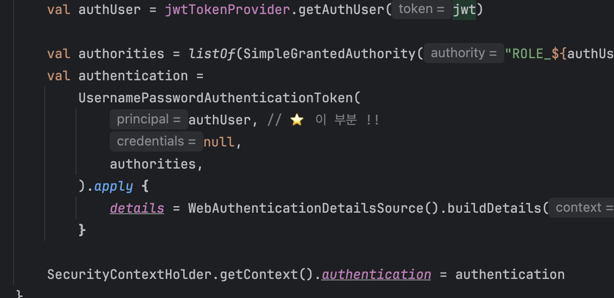 JWT Filter์์ Authentication ๊ฐ์ฒด๋ฅผ ์์ฑํด์ Security Context์ ์ ์ฅํ๋ฉด