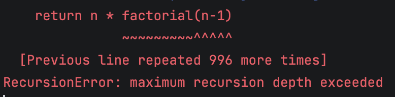 - ์ข ๋ฃ ์กฐ๊ฑด์ด ์์ผ๋ฉด ๋ฌดํ ๋ฃจํ์ ๋น ์ ธ `Stack Overflow`๊ฐ ๋ฐ์ ํ ์ ์๋ค.