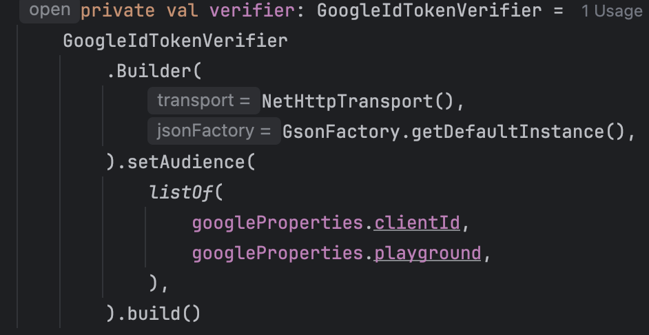 id_token์ด Google์์ ๋ฐ๊ธํด์ค ํ ํฐ์ด ๋ง๋์ง ๊ฒ์ฆํด์ฃผ๋ GoogleIdTokenVerifier์ ๊ตฌํํ์๋ค.